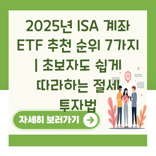2025년 ISA 계좌 ETF 추천 순위 7가지 | 초보자도 쉽게 따라하는 절세 투자법